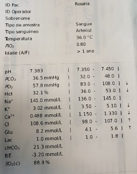 BE: -2 – +2 (excesos de bases) (outro -3 a +3)
